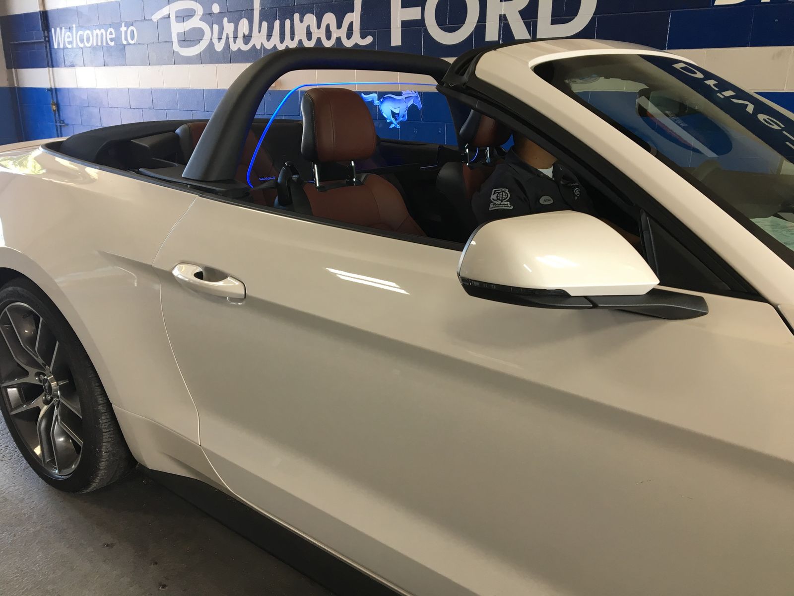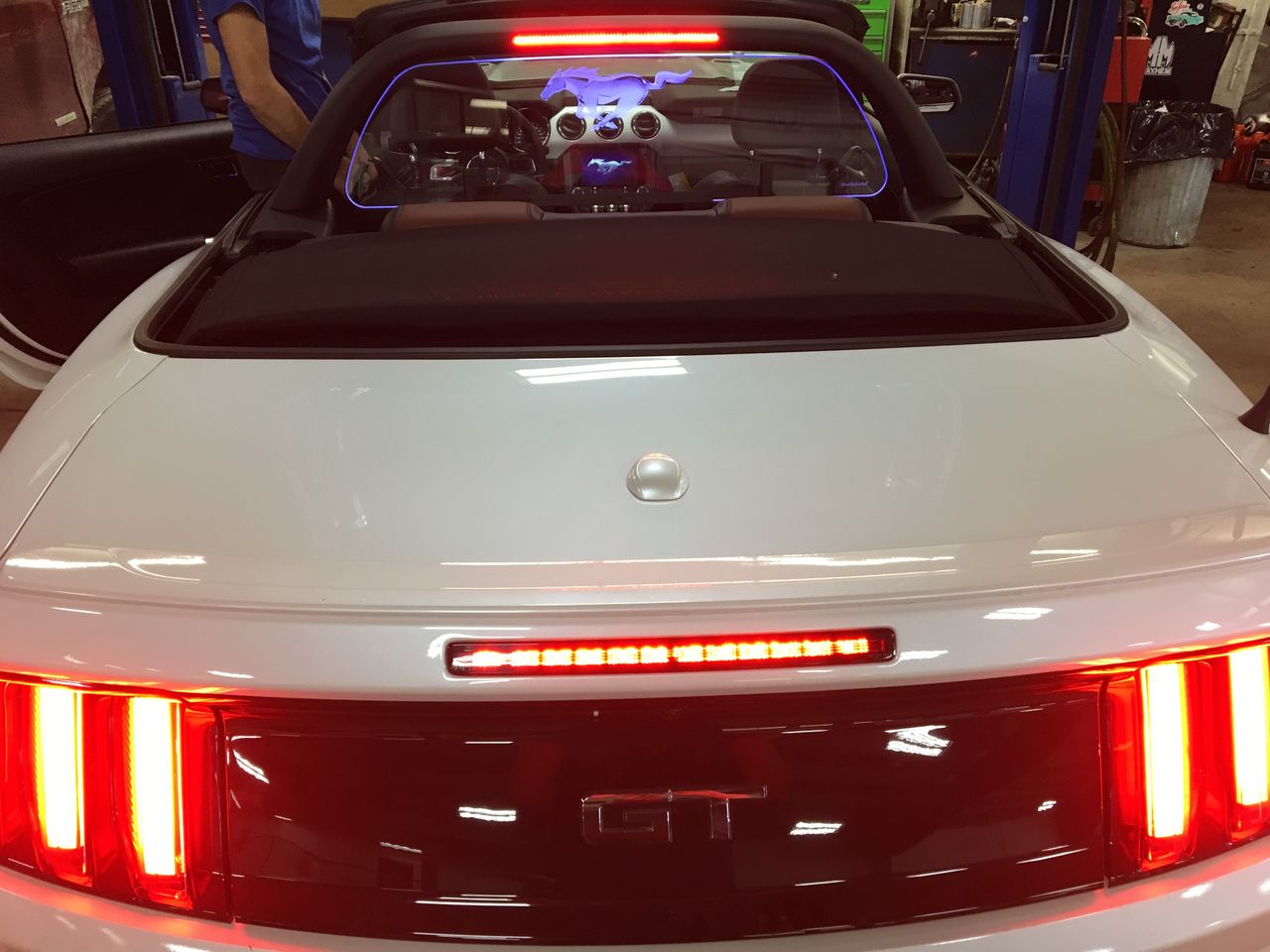BFR Customs installed a Phase 1 Roush Supercharger into this 2017 Convertible Mustang now pushing 670HP we also added a front chin spoiler, rear spoiler, lighted roll bar and a lighted wind screen.