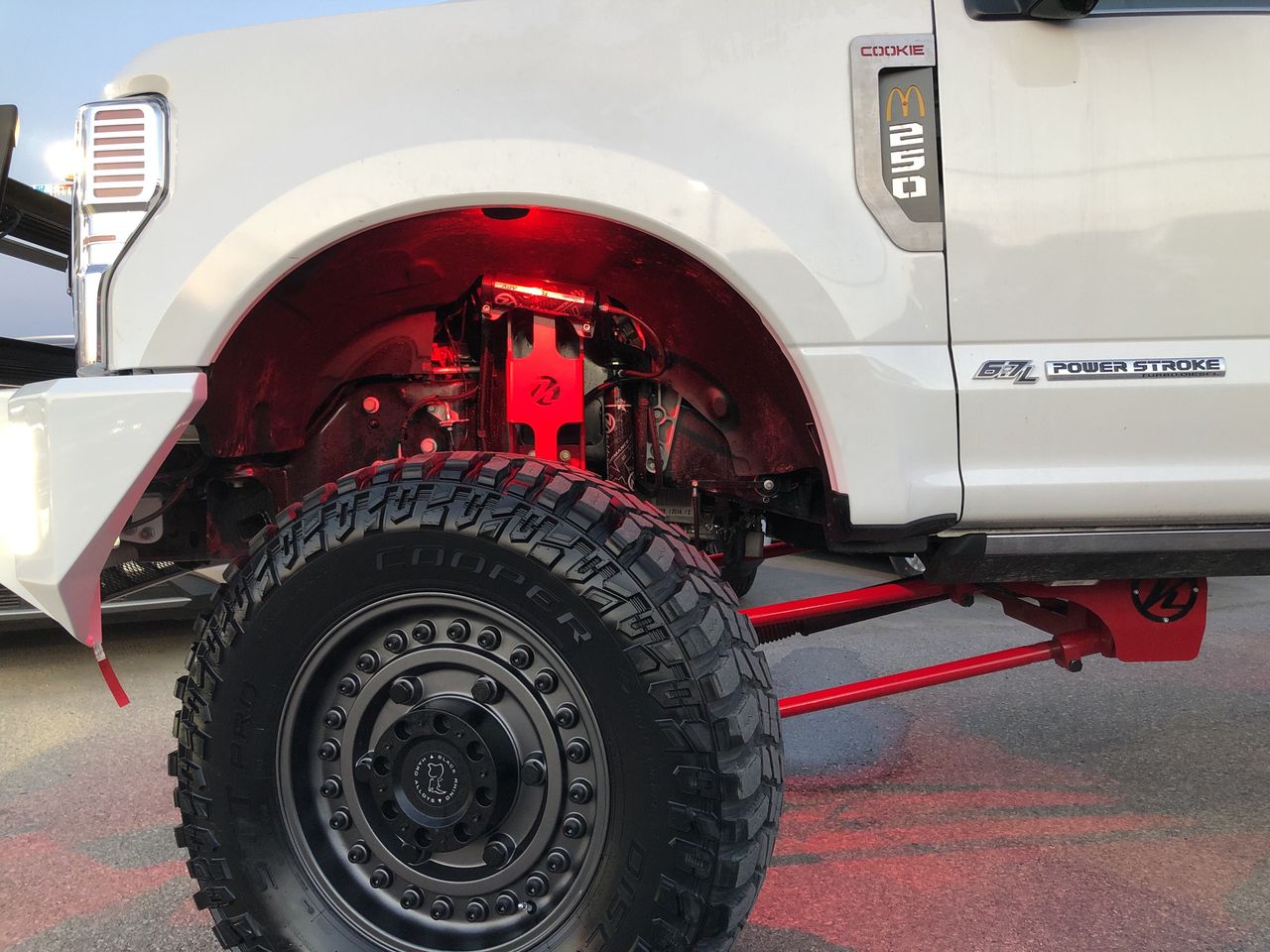 2020 Ford F250 Limited with a Kelderman 6-8” front & rear air suspension. This truck is a one-of-a-kind labor of love for the owner, set on building a truck that wouldn’t be matched on most roads.