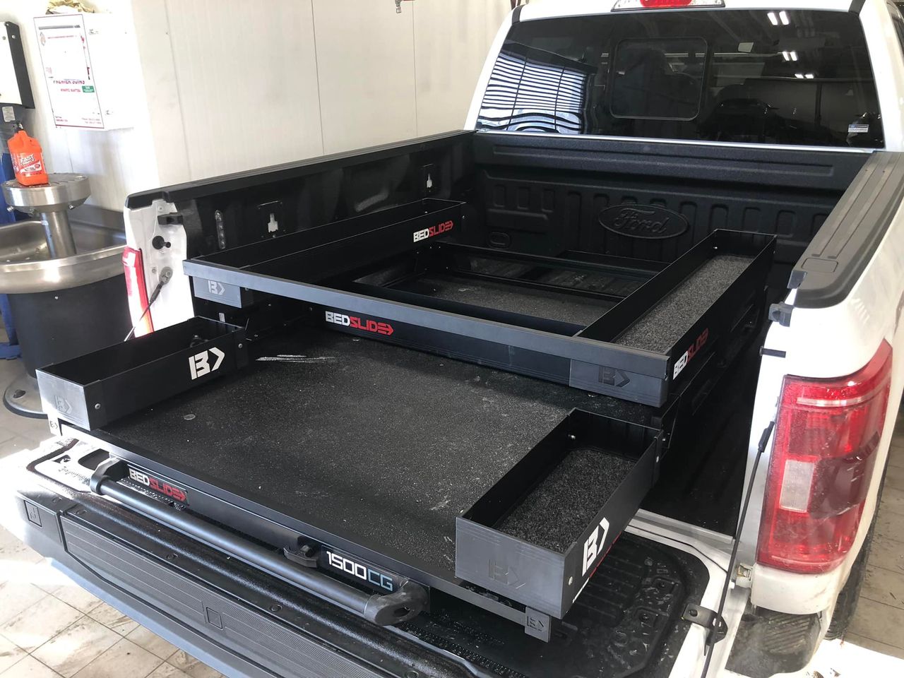 Raul installing this 1500 Contractor Series BEDSLIDE with the Bedbin complete 5 piece kit to help maximize the use of space in the truck bed. The ultimate in heavy duty cargo management.
